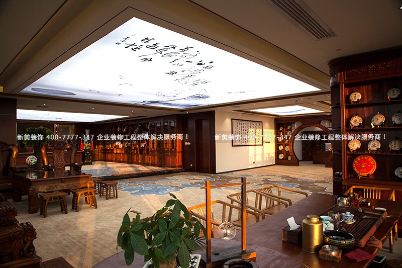 譽園房地產是深圳市的一支引領房地產業科技創新的地產新軍,位于龍崗區中心城萬科天譽中央廣場。本辦公室大量引入現代技法與典型中式元素的裝修風格來結束固有思維模式的束縛,讓整體辦公室空間極具厚重、雅然之意以及內斂的藝術美感。